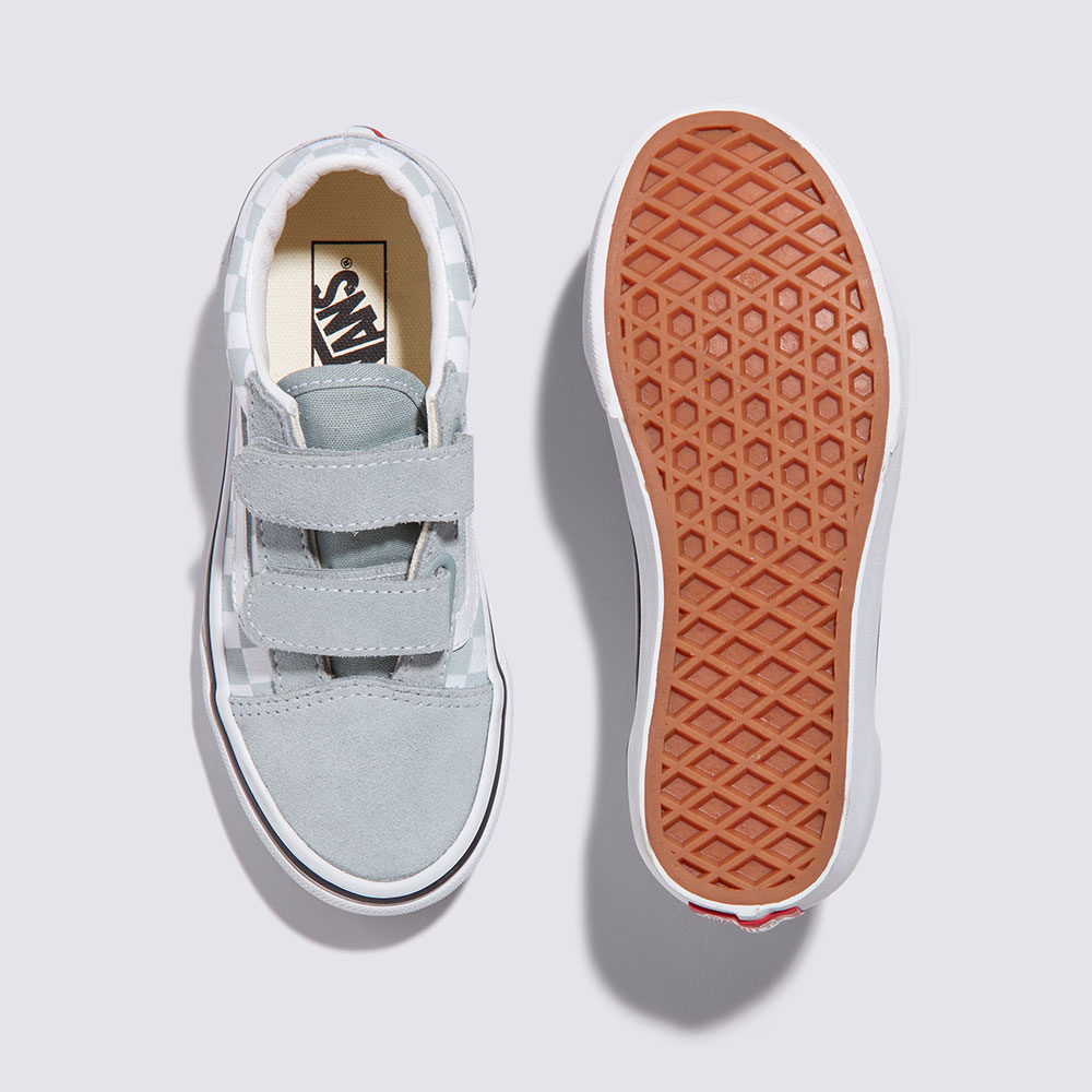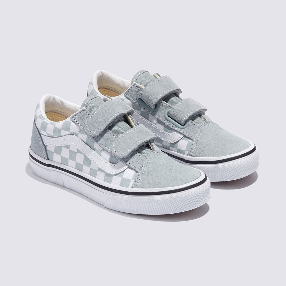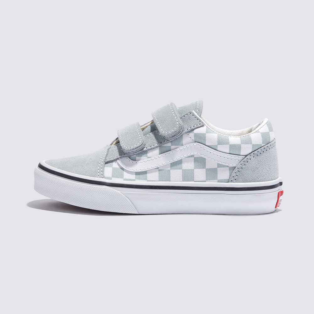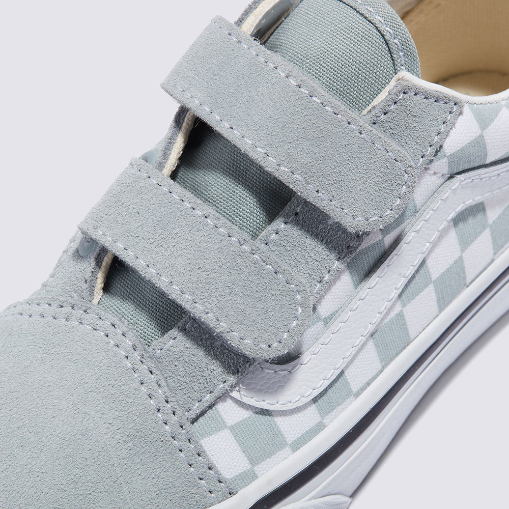 키즈 올드스쿨 V는 기존의 신발끈을 더블 벨크로 스트랩으로 교체하여 반스의 사이드 스트라이프 슈즈를 재해석한 모델입니다.