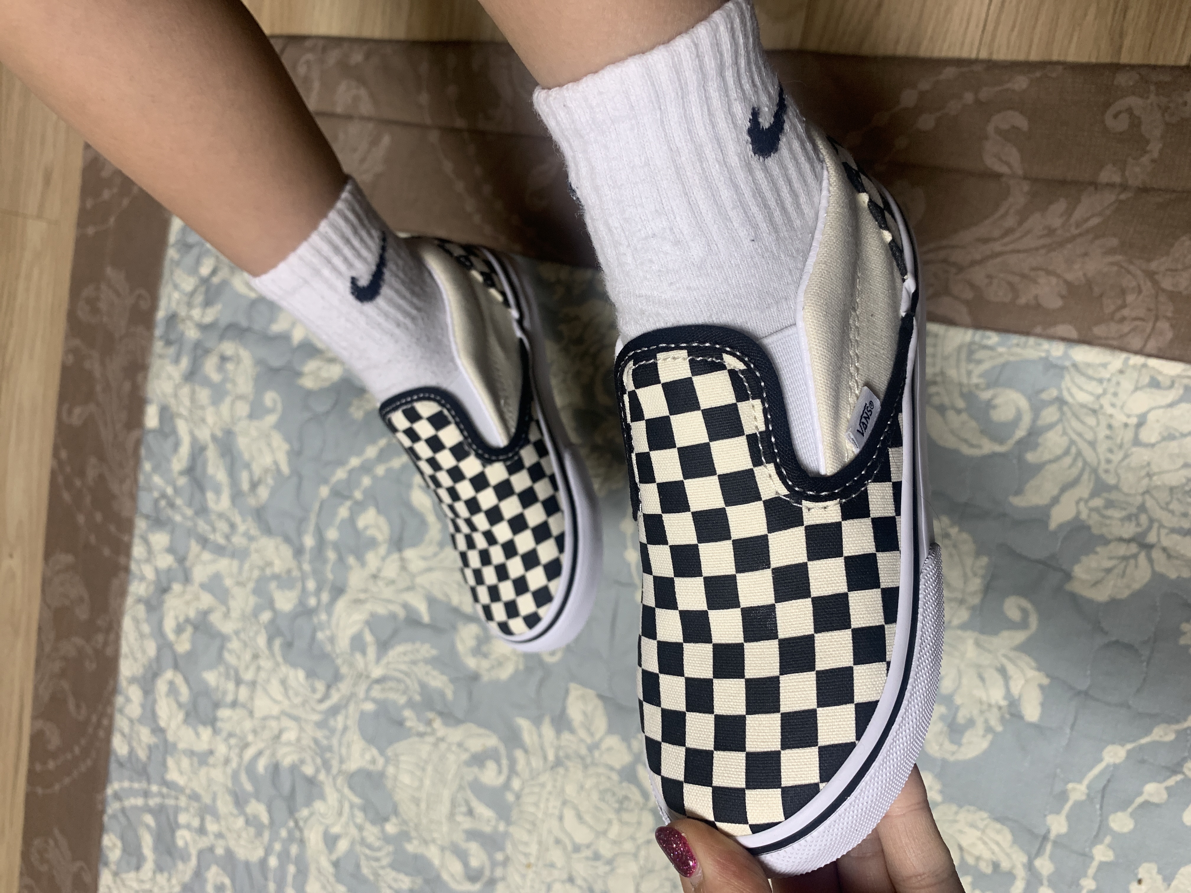 토들러 체커보드 클래식 슬립-온은 반스의 아이콘이 된 체커보드 프린트가 된 얇은 슬립-온 캔버스 업퍼 스타일의 신발입니다.